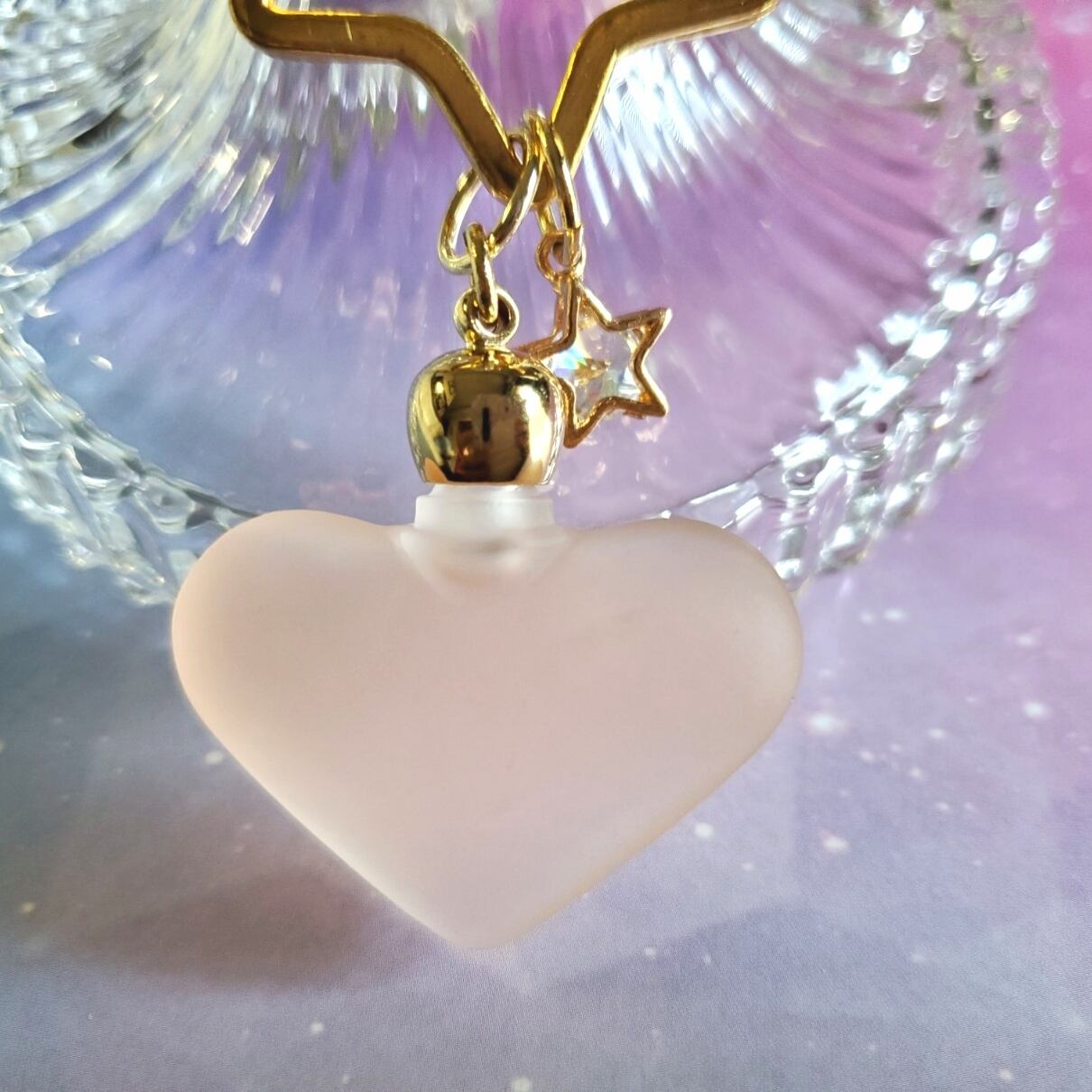永遠の愛❤️ソウルメイト❤️魂と繋がる❤️愛の絆❤️織姫のしずく❤️エタニティラブ❤️メモリーオイルハートフロストガラス香水瓶アミュレットバッグチャーム☆キラキラガラス星チャーム付き | 願いを叶える魔法の香り❀メモリーオイル♡開運開花❀お守り☆月のしずく